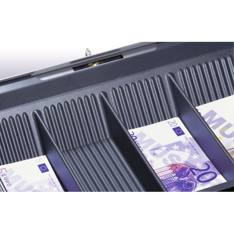 В бокс для денег входят: съемный лоток для сортировки монет с 8 отделениями для монет всех номиналов, отделение для банкнот для временного хранения и лоток с 4 отделениями для банкнот.